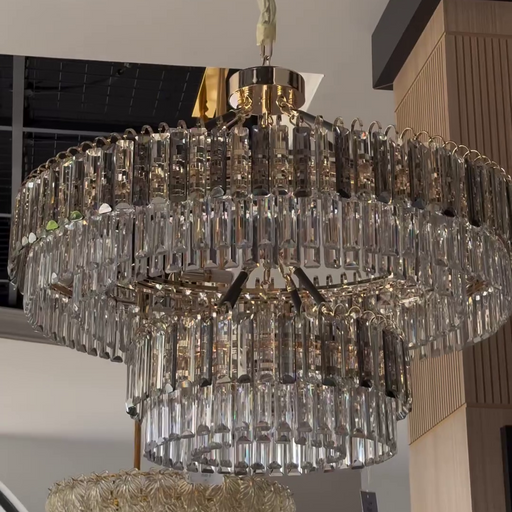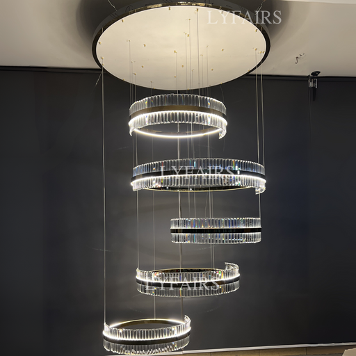View full detailsThis is Lyfairs' new ceiling-mounted crystal chandelier, with an oversized circular multi-layered shape with a layered look and shiny crystal rods ...