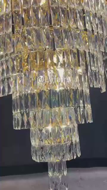 Extra Large Modern Multi-layers Gold/Black Light Luxury Crystal Chandelier For 2-Story Living Room,Foyer