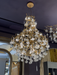 Nature-inspired Brass Tree Chandelier with Glazed Glass Flowers