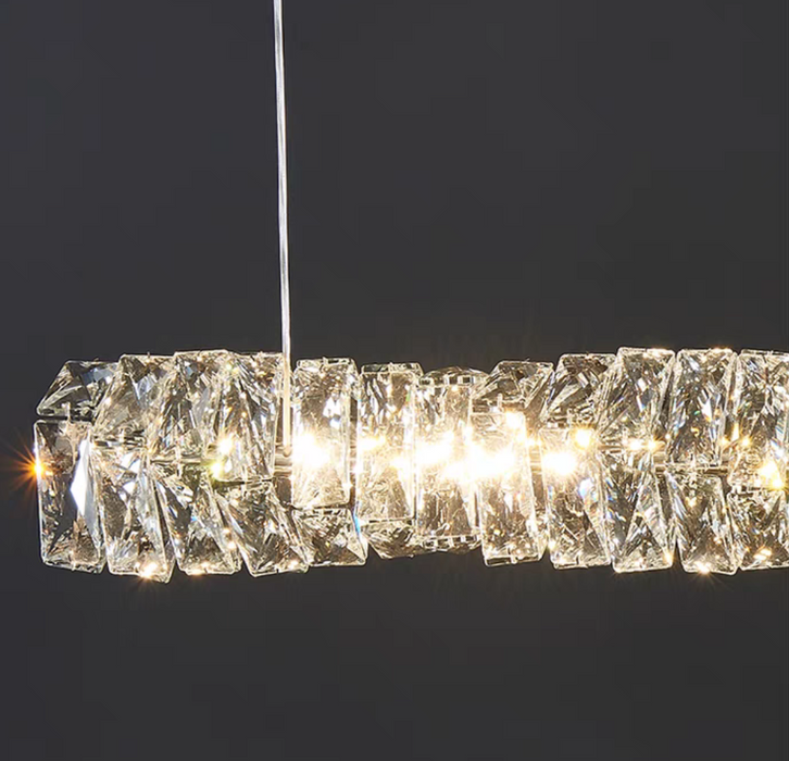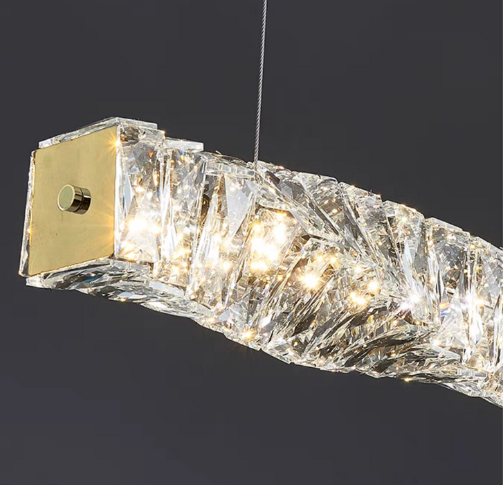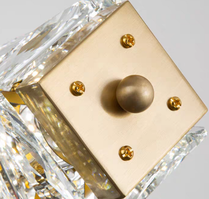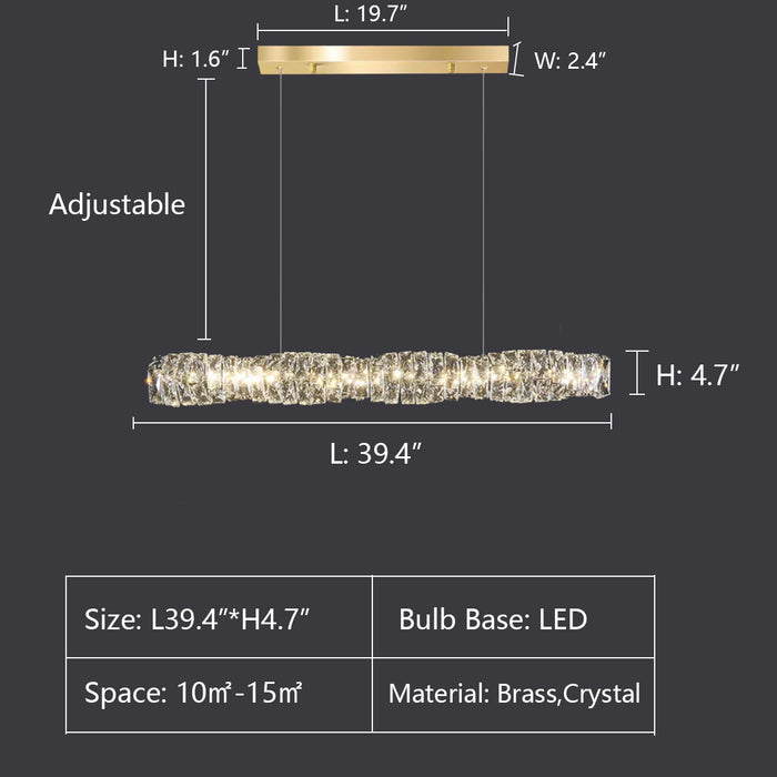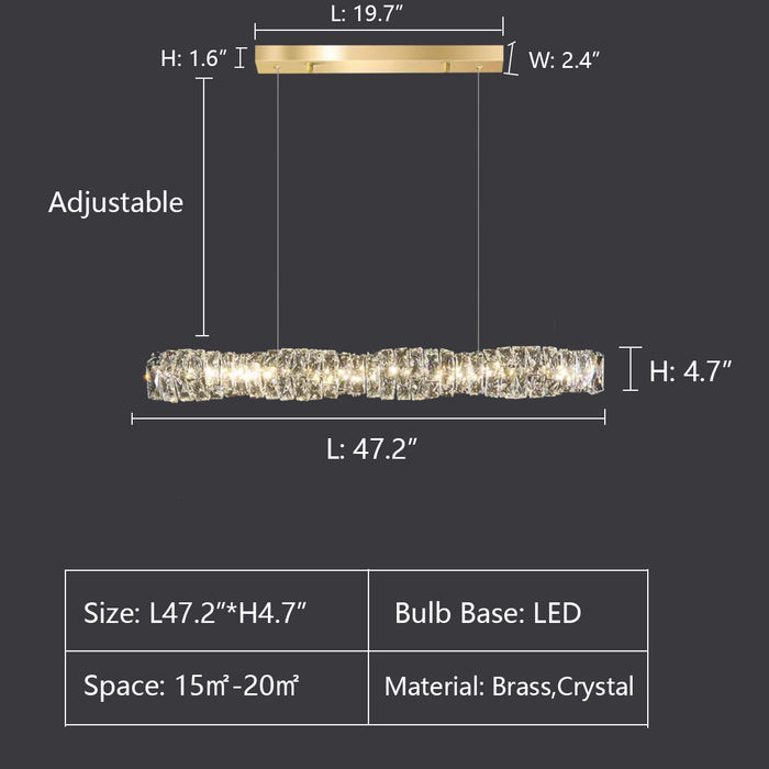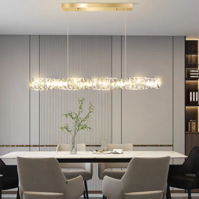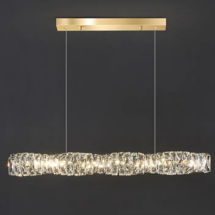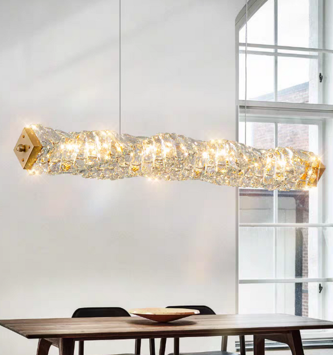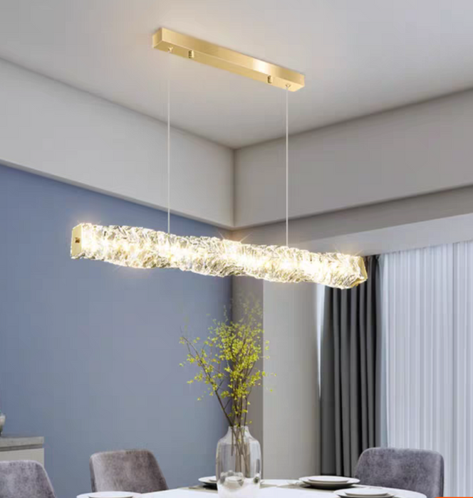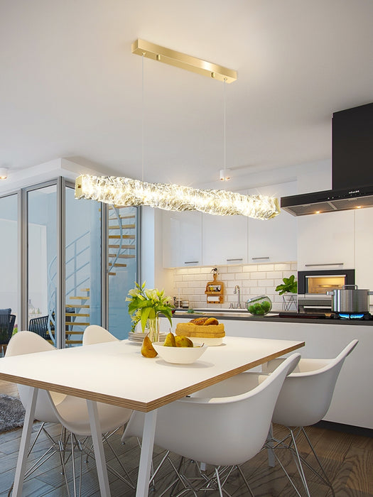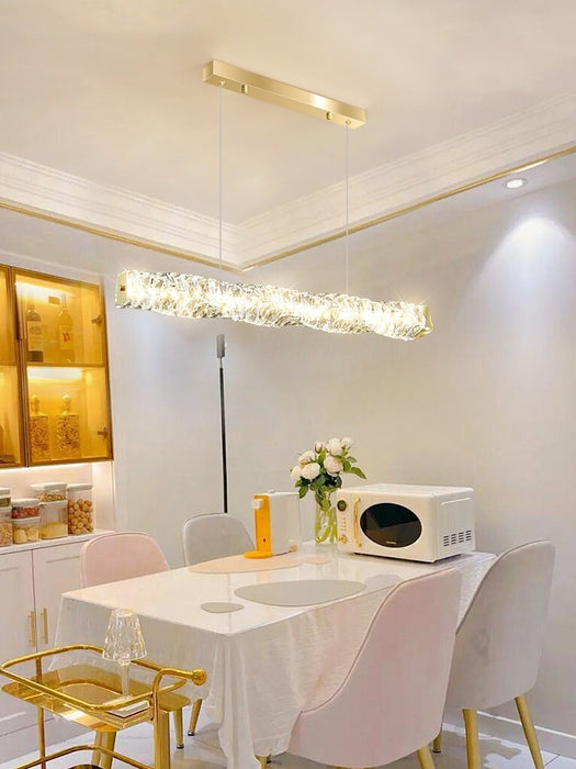 Nordic Light Luxury Rectangle Brass and Crystal Pendant for Dining Room/Kitchen Island