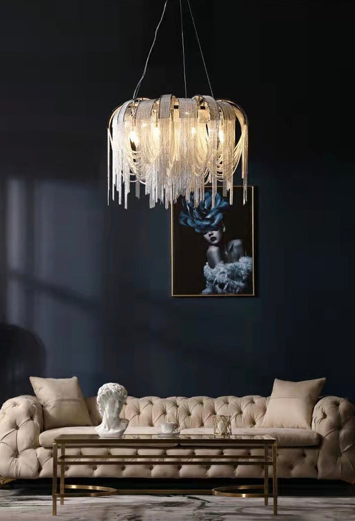 View full detailsThis artistic chandelier features a classic round design in the form of irregular tassel,which is made of aluminum.Modern light form with elegance ...