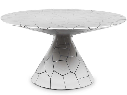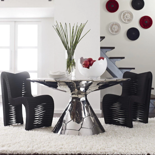 View full detailsAdd a touch of modern elegance to your dining room with the Random Cut Silver Round Dining Table. The unique crazy cut design and silver finish mak...