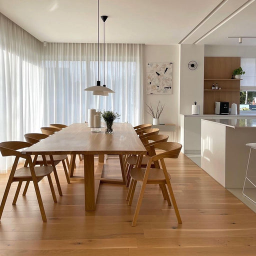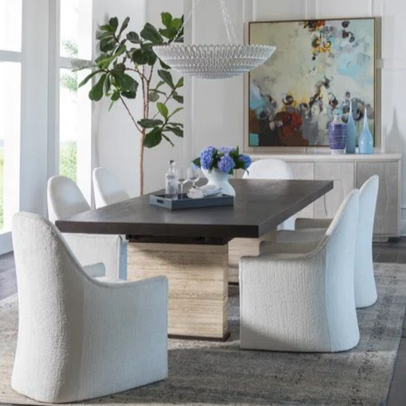 View full detailsThe T-Base Dining Table is a stunning combination of solid oak wire-brushed and limed bases and a Carrara marble top. Its two T-shaped bases can be...