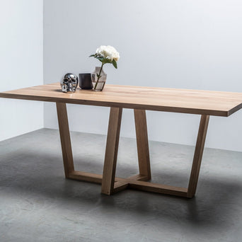 View full detailsGather round this exquisite Oak Dining Table, designed with intricate interlocking legs that create an elegant visual effect. Perfect for close-kni...