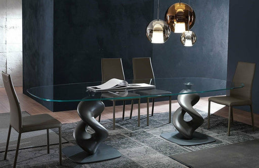View full detailsThis post-modern black dining table offers a durable and stylish design. Crafted from oak with a fine veneer, it features contoured curved legs and...