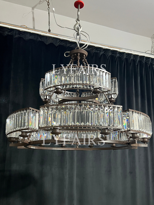 View full detailsThis chandelier is made of high translucent crystal, diamond-like cutting process, crystal clear; hardware baking lacquer lamp body surface is smoo...