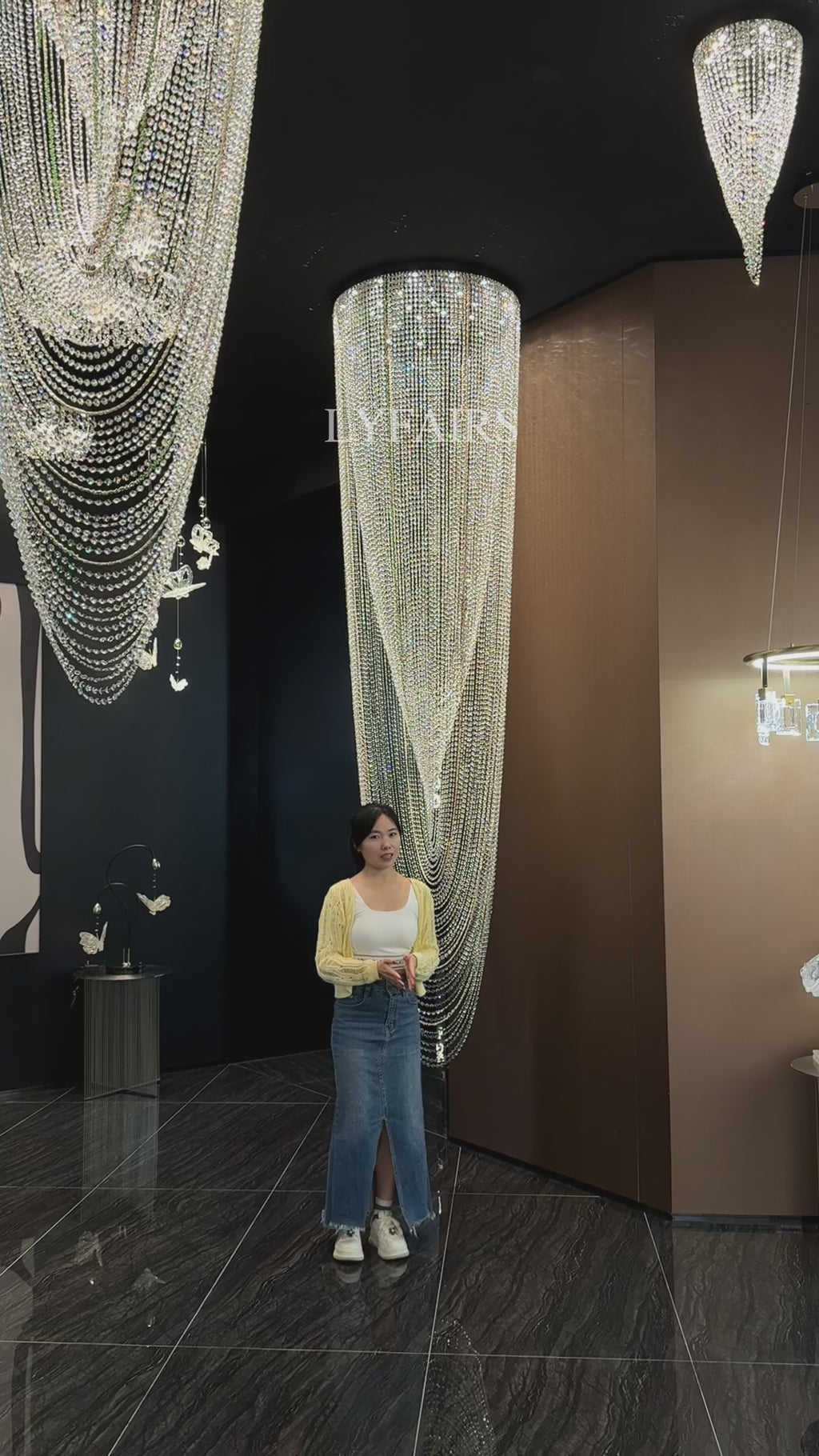 Luxury Waterfall Crystal Flush Mounted Chandelier for High Ceiling