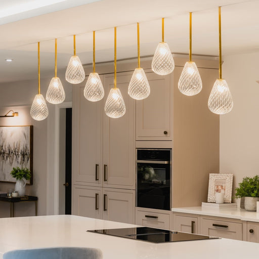 View full detailsThis modern chandelier is made of high-quality glass and brass. There are five styles to choose from, each with its own unique shape, so you can mi...