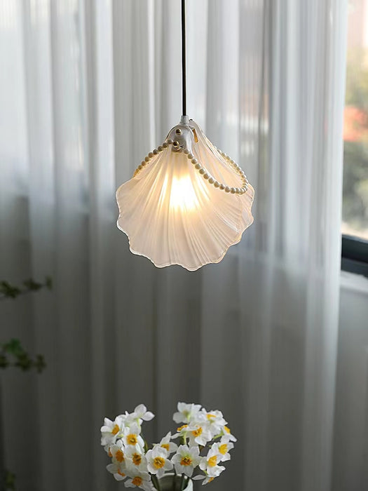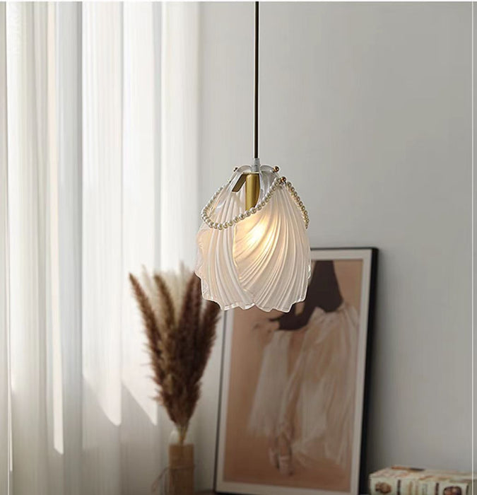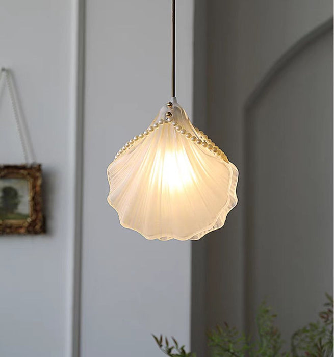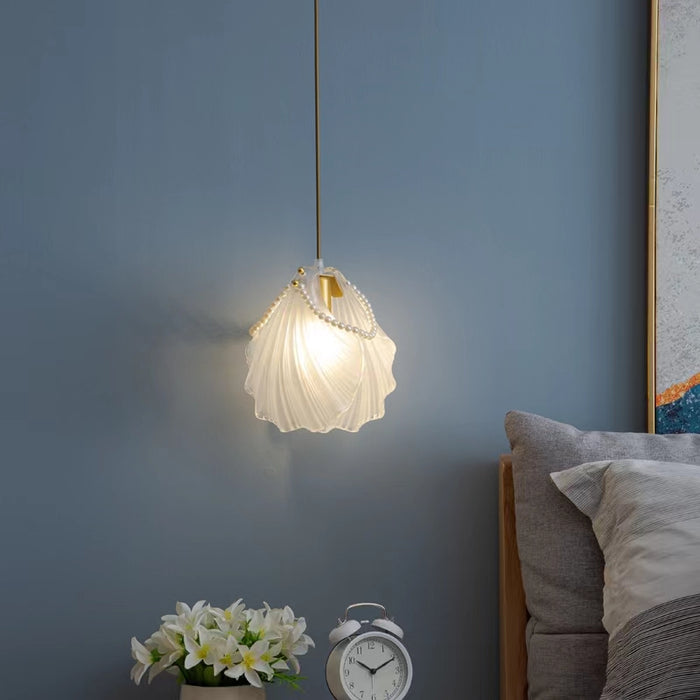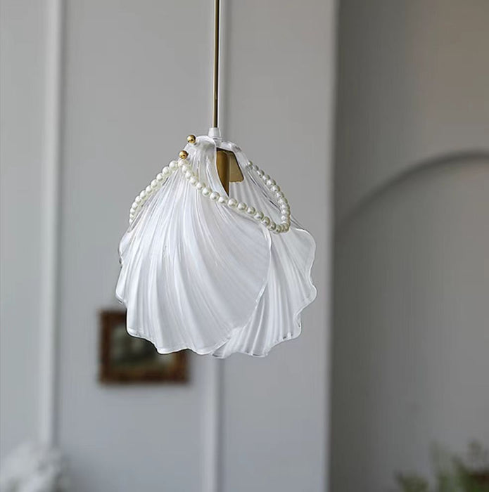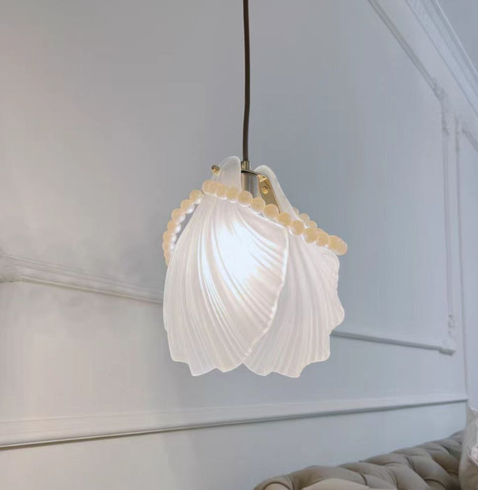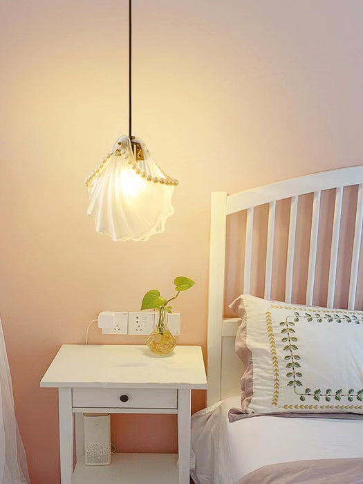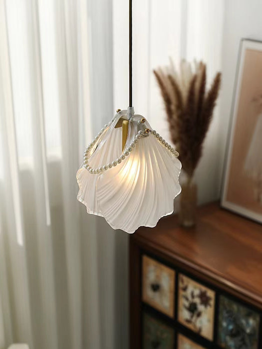 Bohemia Art Frosted Glass Seashell Pure Pearl Pendant Light for Bedside/Dining Table/Coffee Table