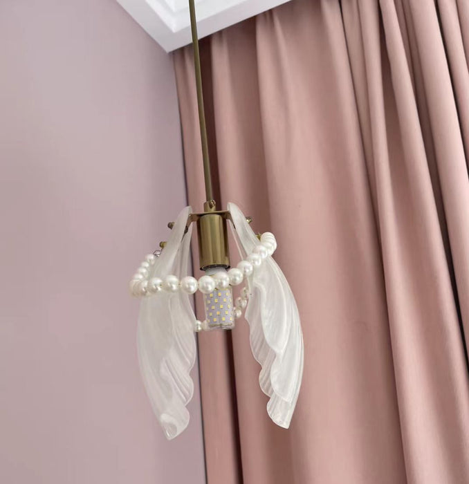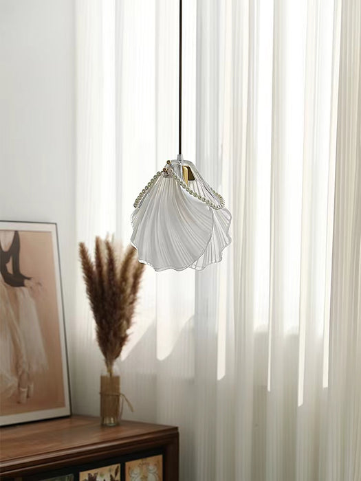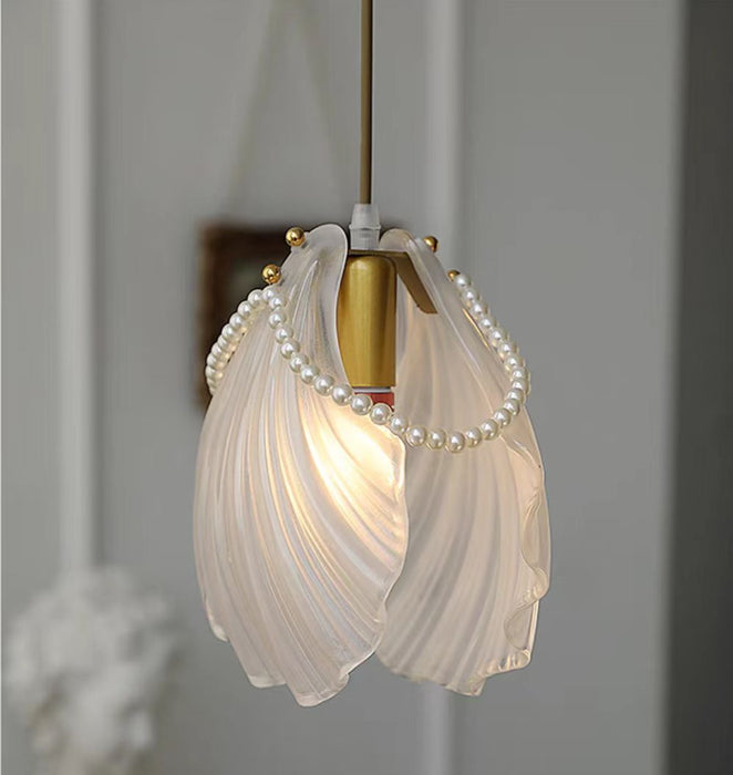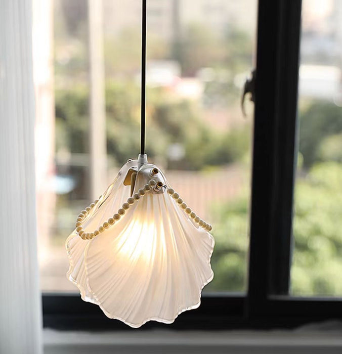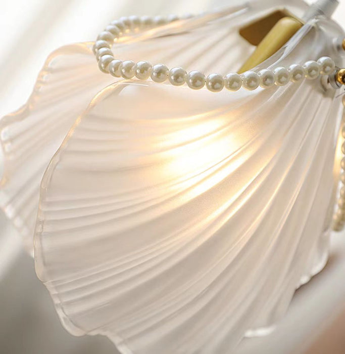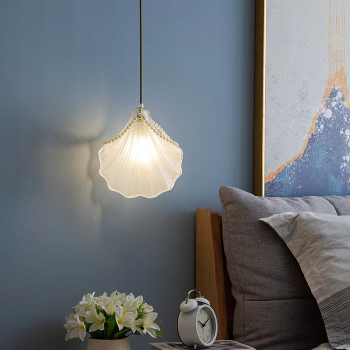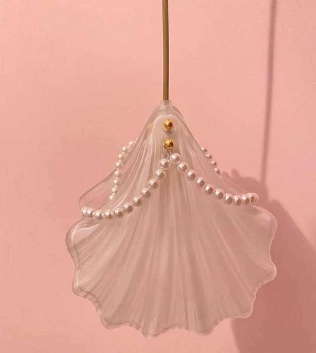 Bohemia Art Frosted Glass Seashell Pure Pearl Pendant Light for Bedside/Dining Table/Coffee Table
