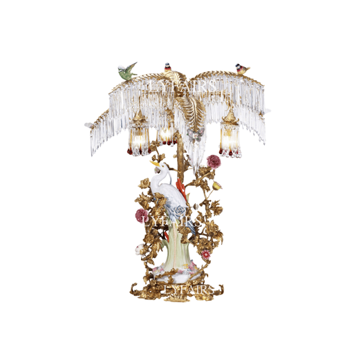 Step into a realm of opulence with the Avian Melody Chinoiserie Crystal Fringed Table Lamp. This lamp is a dazzling fusion of Baroque drama, featur...