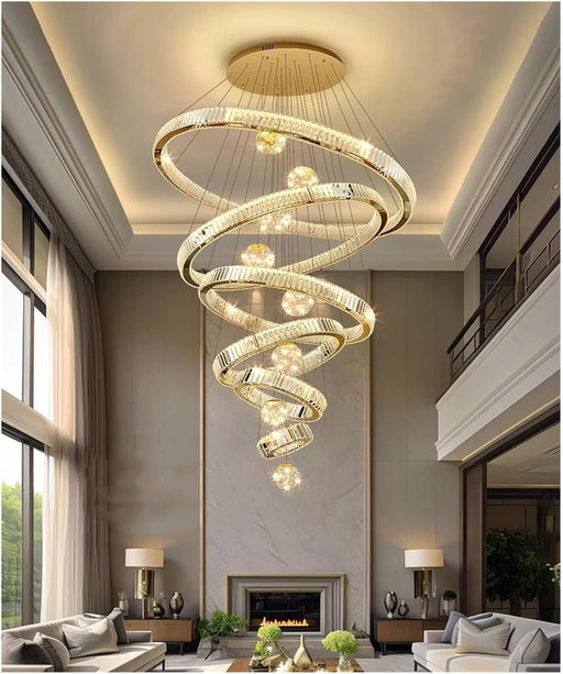View full detailsThis majestic Modern Extra Long Cascade Spiral Crystal Chandelier is perfect for creating an elegant atmosphere. Its chrome-plated steel fitting an...