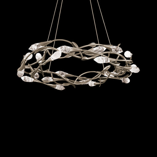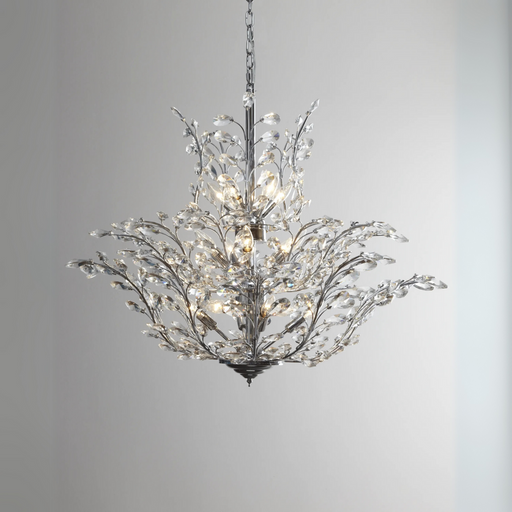 Ver todos los detallesEsta innovadora lámpara de araña se compone de una docena de hojas de cristal caladas con bordes metálicos que cuelgan de forma natural, dándole u...