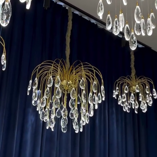 Ver todos los detallesEsta ligera lámpara de araña de cristal de lujo es un modelo de diseño, hecha de piedra de cristal natural y acero inoxidable. La forma general es ...