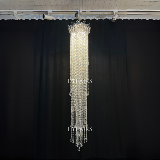 Ver todos los detallesEsta gran lámpara de araña artística está hecha de cristal de alta calidad doblado en forma de ala, con un cuerpo giratorio de doble espiral, cuan...
