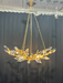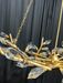Esta sofisticada lámpara de araña de cristal hecha a mano agregará una iluminación impresionante a cualquier sala de estar, comedor o dormitorio. Las modernas ramas con atrevidas hojas de cristal facetadas cortadas a mano brindan una apariencia elegante inspirada en la naturaleza. Cree un ambiente cálido y acogedor con esta elegante lámpara de araña.
