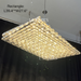 Lámpara de araña de cristal de montaje empotrado con luz rectangular de lujo extra grande para sala de estar/dormitorio