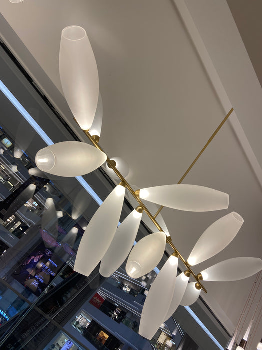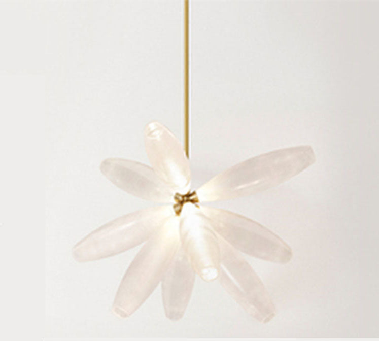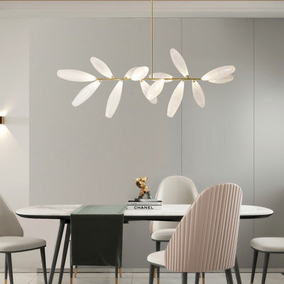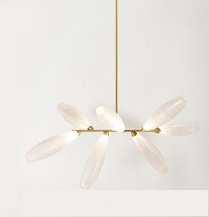 Lámpara de araña de hierro con bombilla en forma de grano de arroz lineal minimalista para comedor