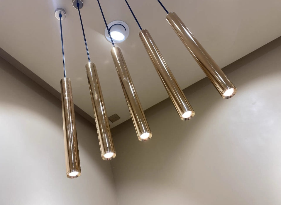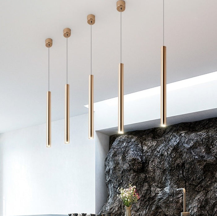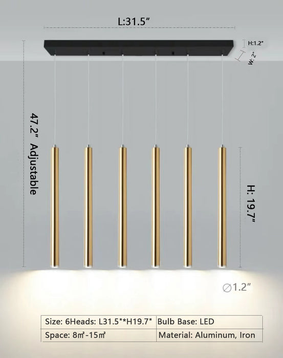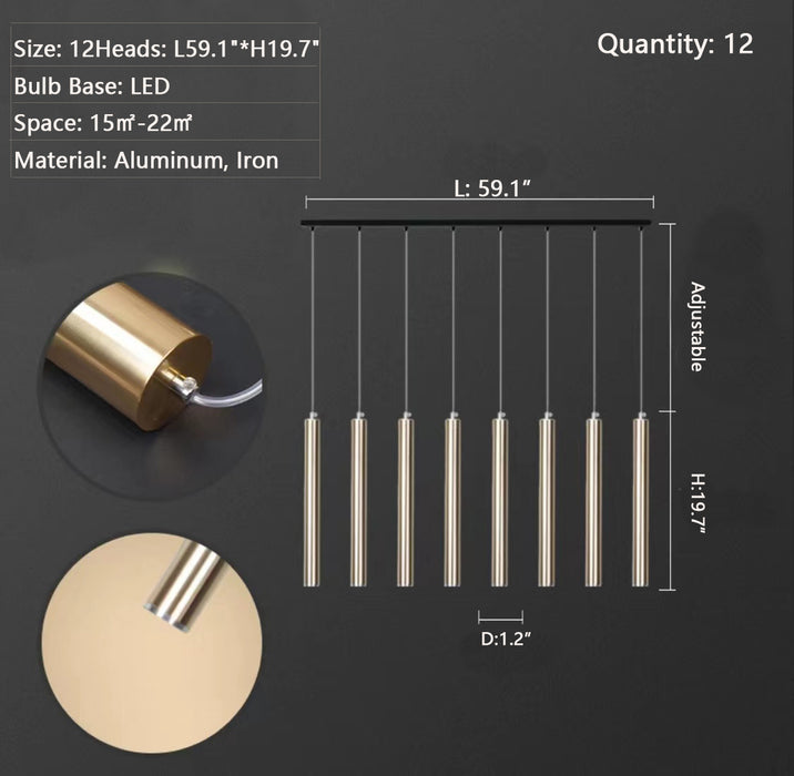 Lámpara colgante de comedor lineal larga de oro escandinavo para bar/isla de cocina/comedor