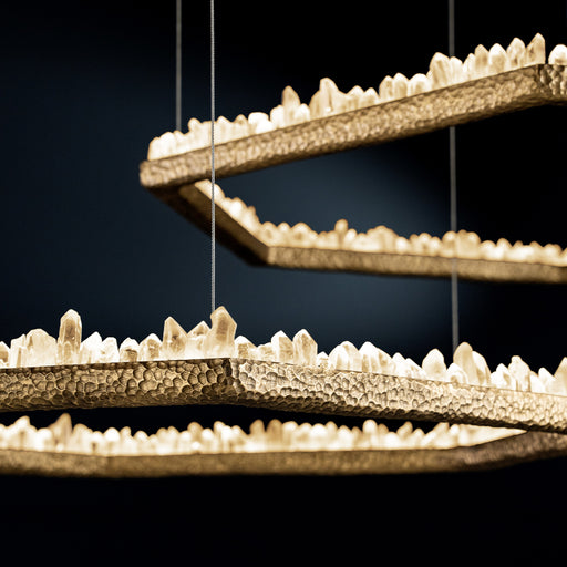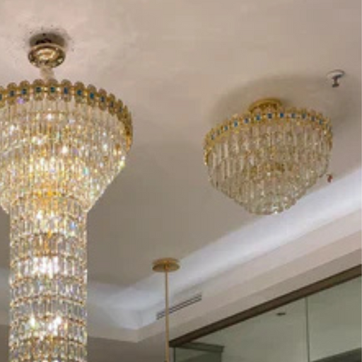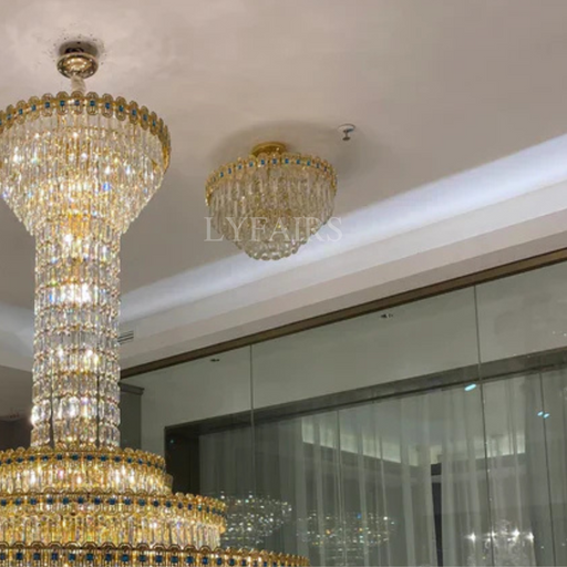 Hand Hammered Brass Natural Crystal Chandelier for High-ceiling/Low-ceiling