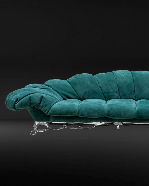 Ver todos los detallesThe LYFAIRS x GORDON GU Tuscany Three-Seater Sofa blends luxurious black cowhide with transparent, intricately carved armrests for a striking contr...
