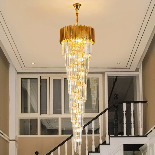 Ver todos los detallesIlumine su villa, escalera o vestíbulo con nuestra lámpara de araña de cristal extralarga de lujo. Elaborado con metal y cristal K9 de alta calida...