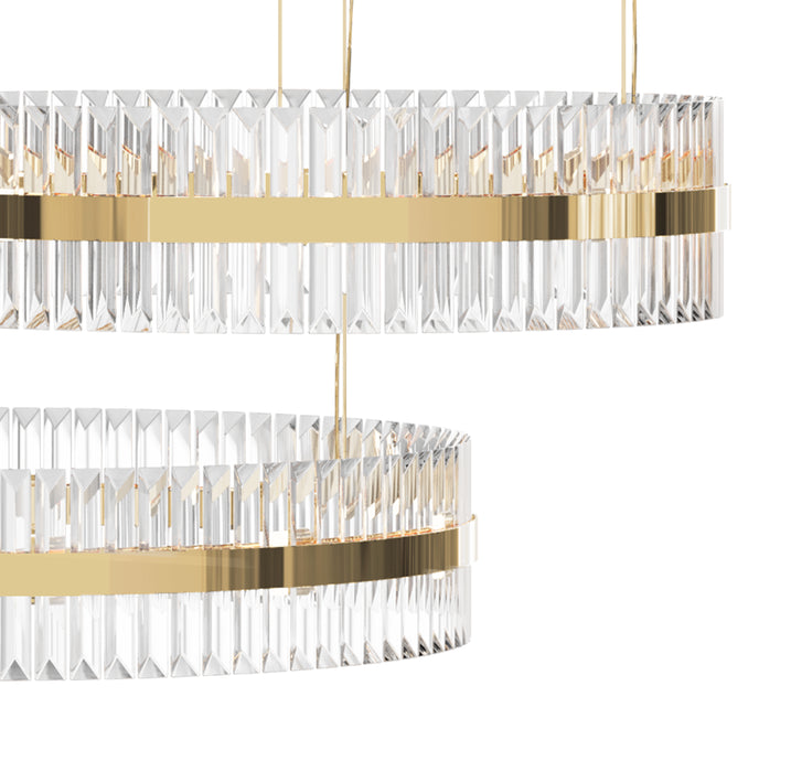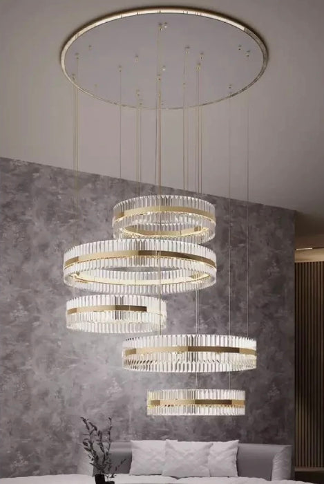 Lámpara de araña de cristal de 5 anillos con acabado dorado