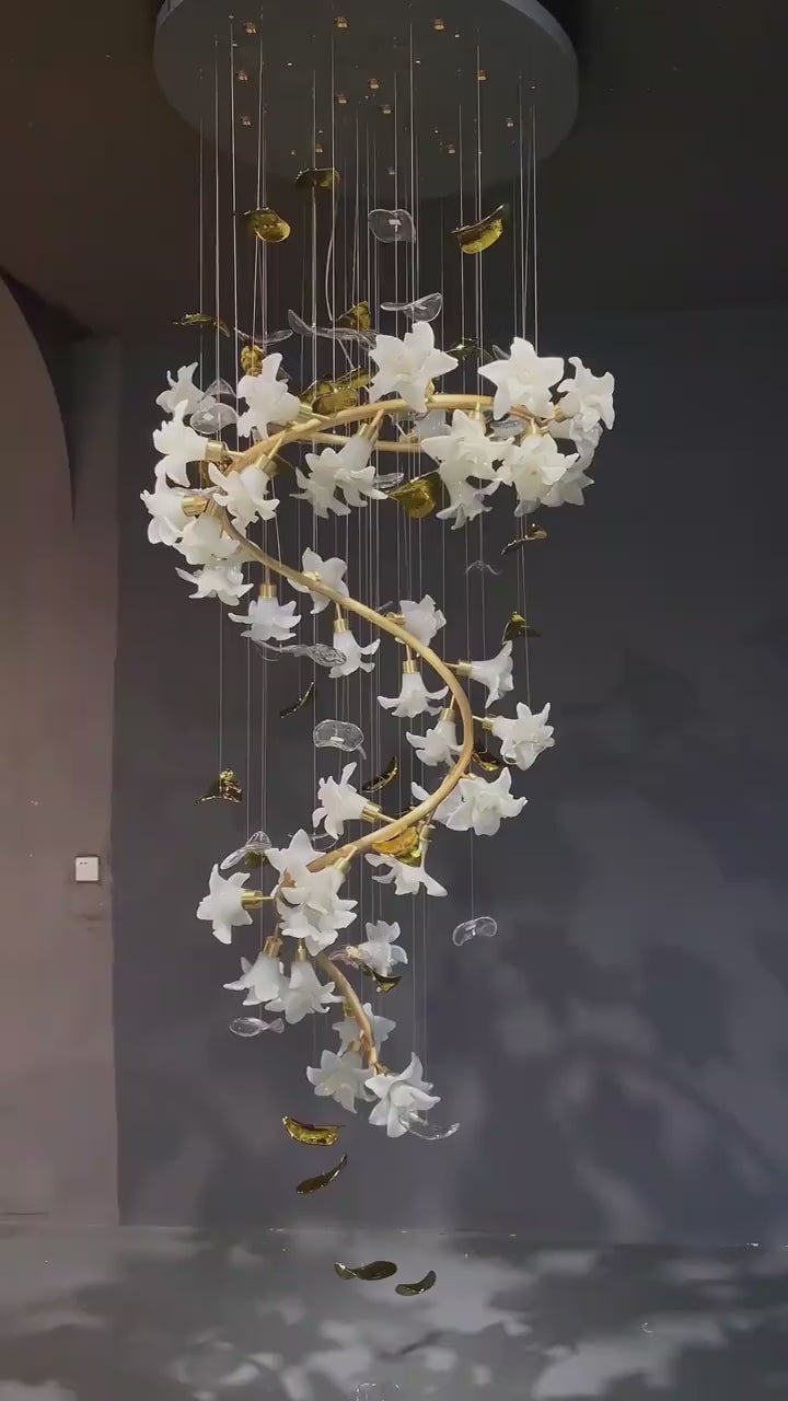 Lámpara de araña de flores de cerámica con rama de latón de diseño artístico