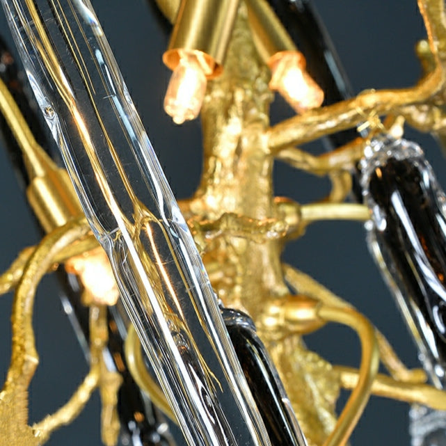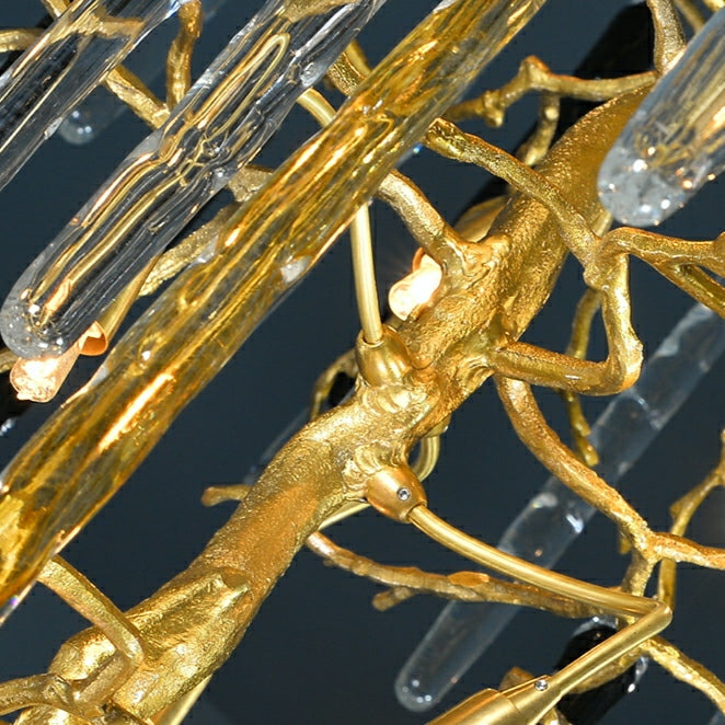 Lámpara LED de rama de árbol de latón Extra grande, barra de cristal, accesorio de iluminación de techo para vestíbulo, sala de estar