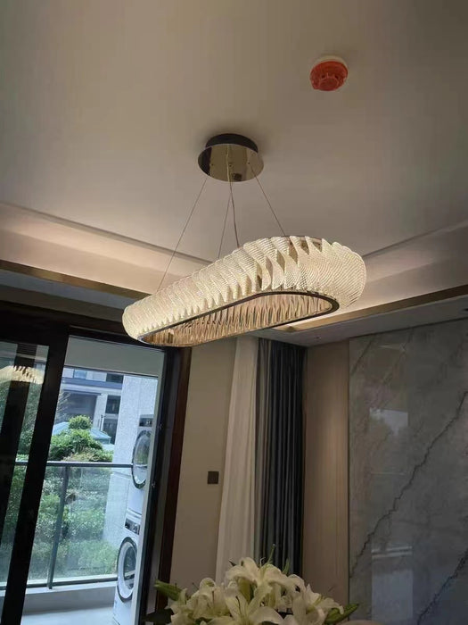 Lámpara de araña ovalada moderna de acero inoxidable con niveles extragrandes para comedor/isla de cocina/entradas grandes