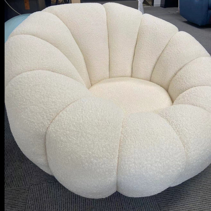 Sillón de forro polar con forma de calabaza blanca y reposapiés