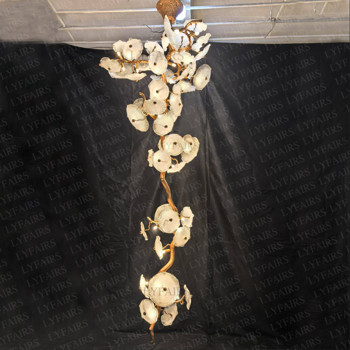 Flush Mount Mushroom Glass Chandelier for High Ceiling
