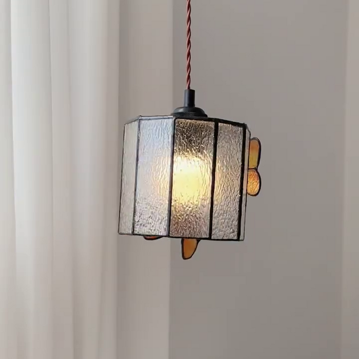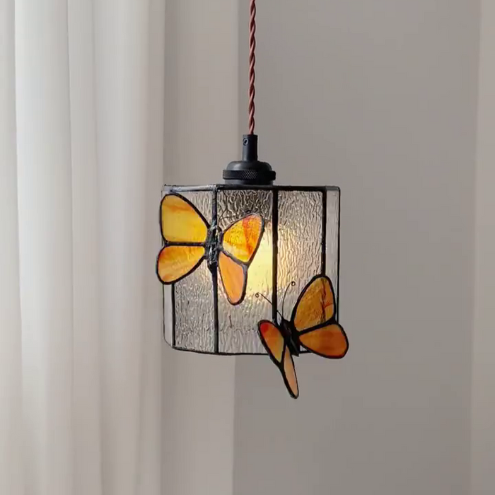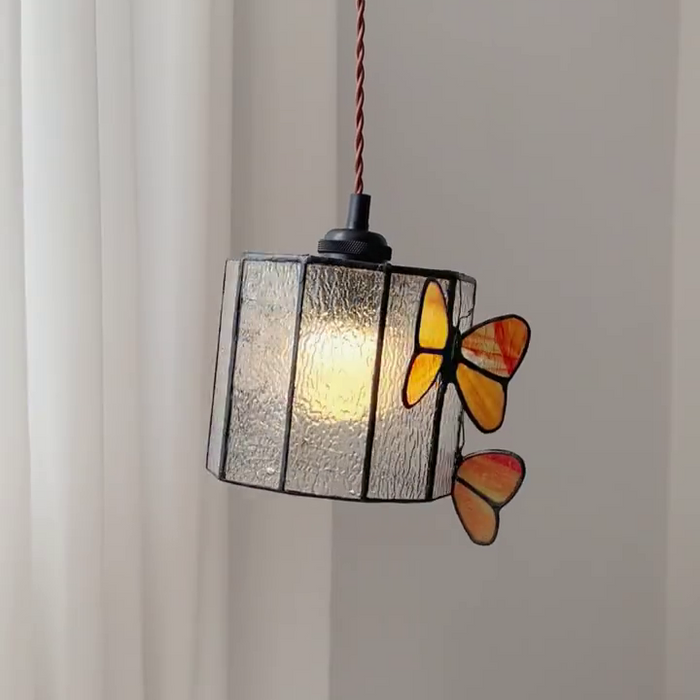 Lámpara colgante con pantalla de cristal de mariposa retro francesa
