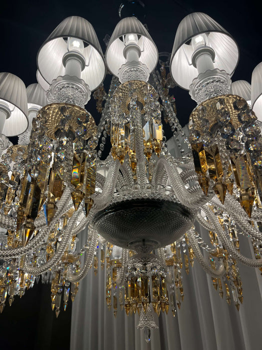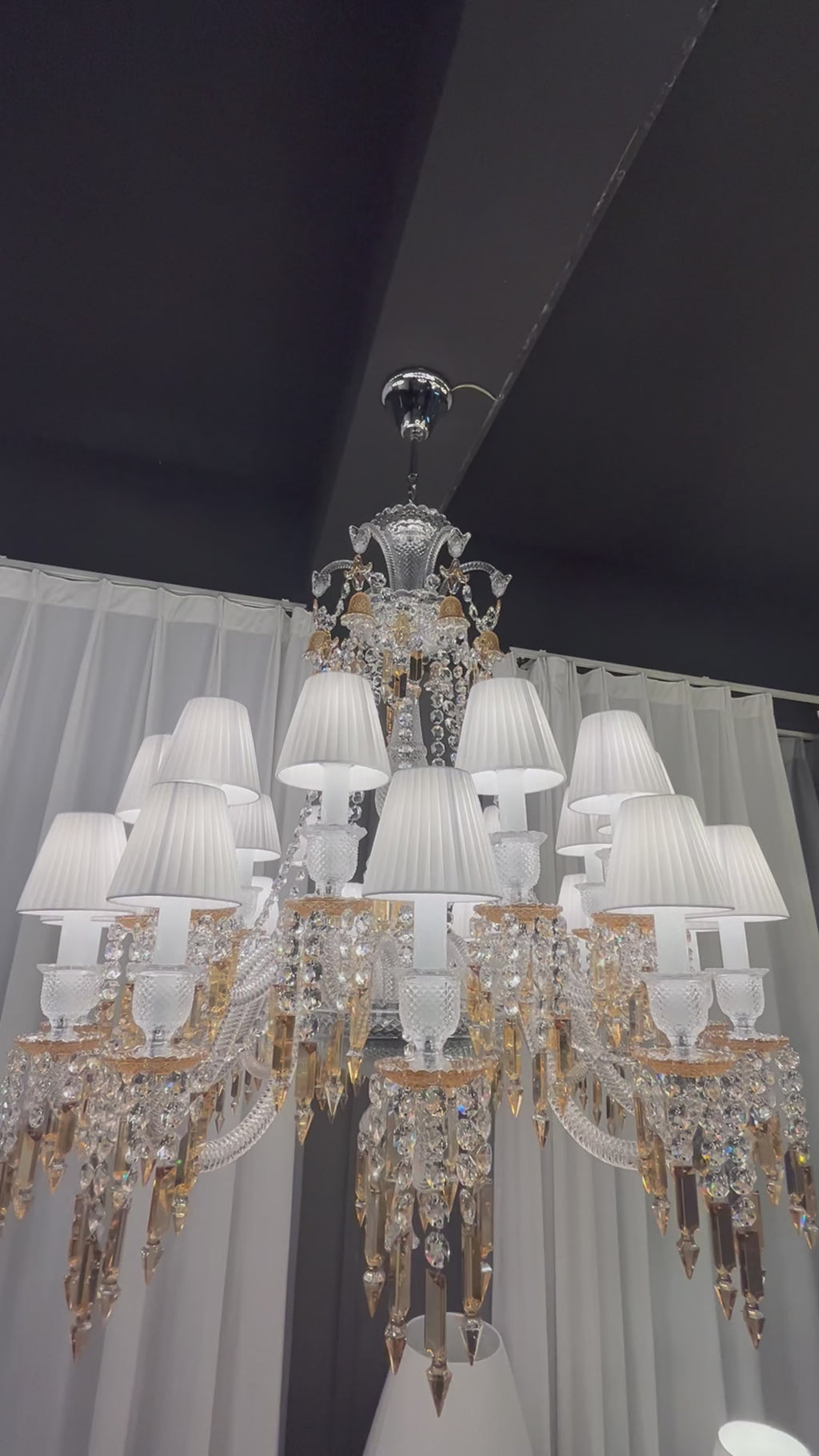 Luxury Large Classic Tiered Yellow Crystal Candle Lampshade Chandelier for High-ceiling Room/Living Room