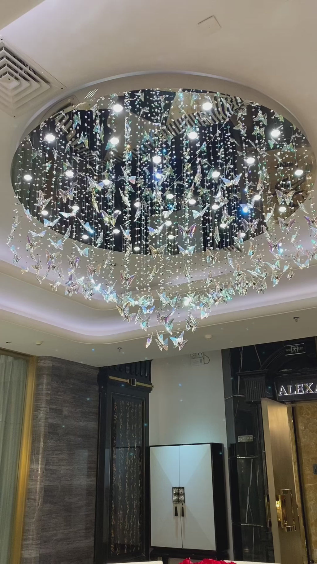 Lámpara de araña redonda de mariposa con montaje empotrado y diseño artístico de lujo ligero