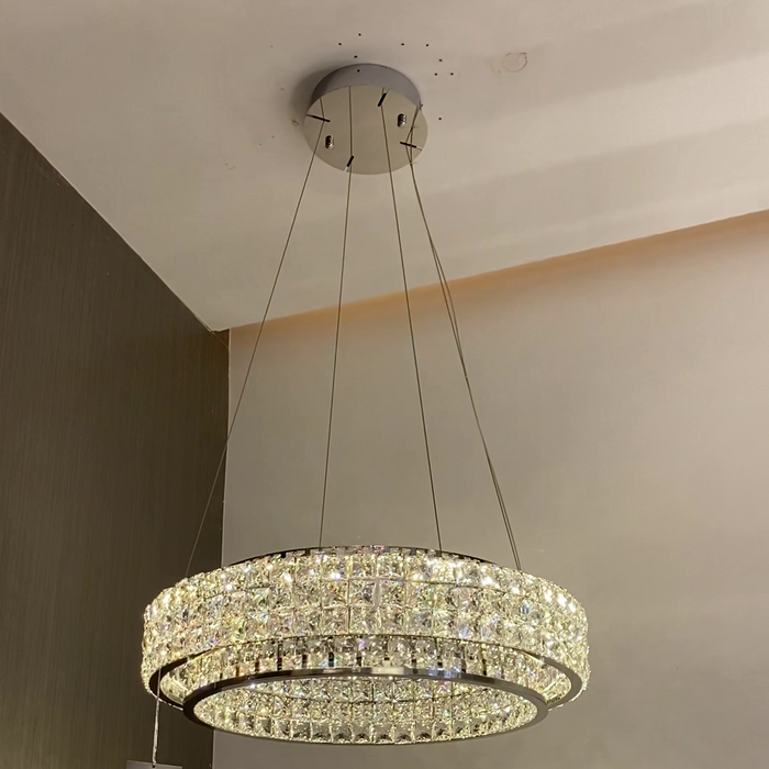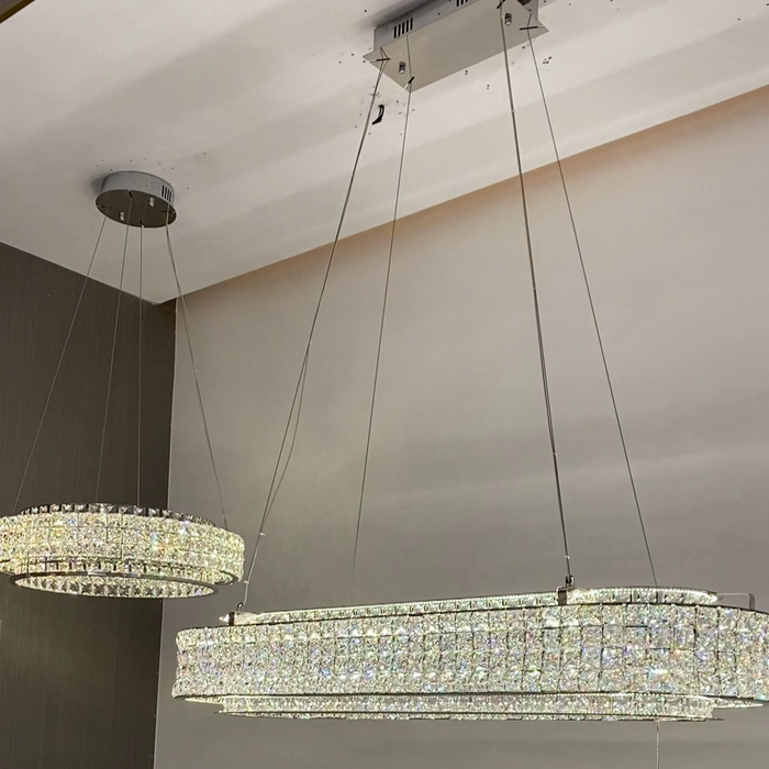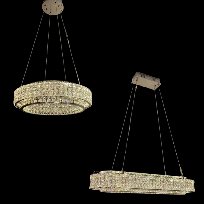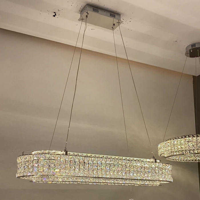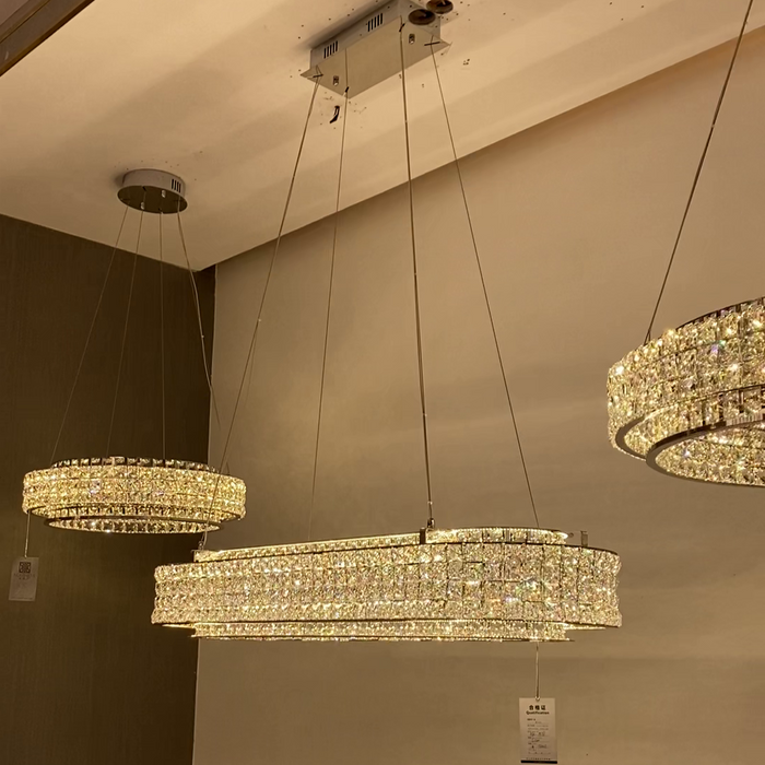 Lámpara de araña de cristal redonda/ovalada de dos capas de lujo ligera para sala de estar/comedor/isla de cocina