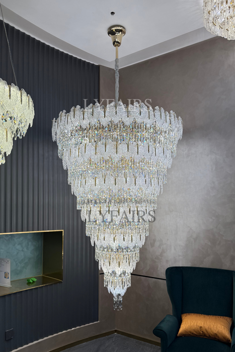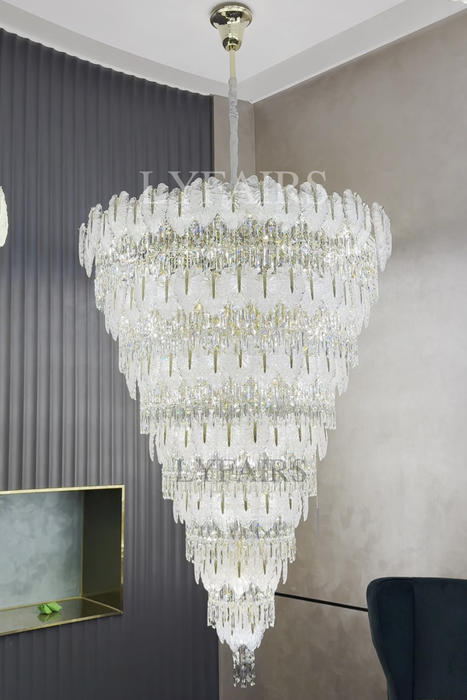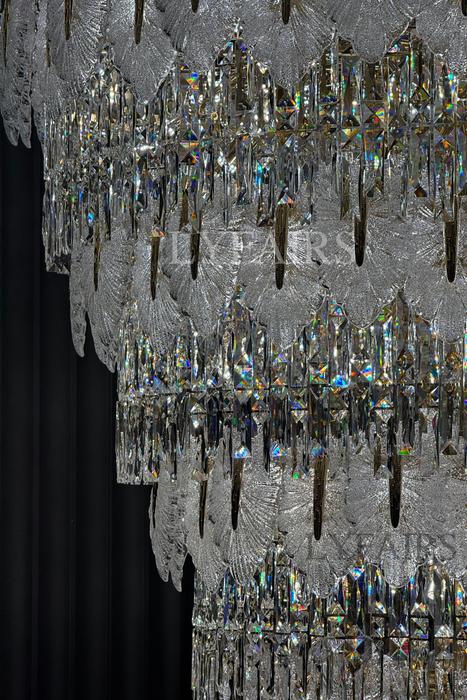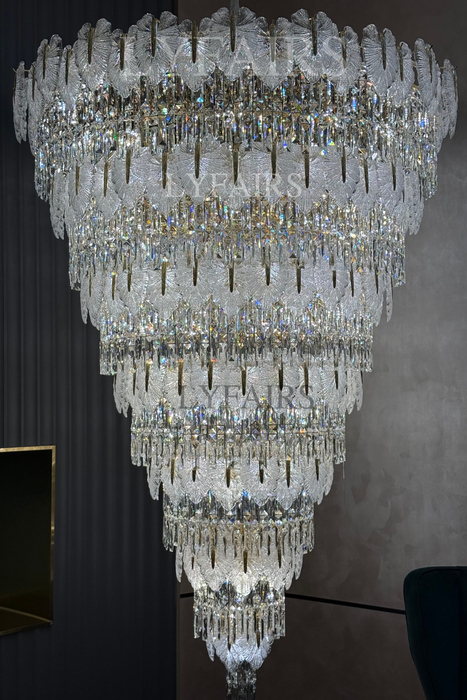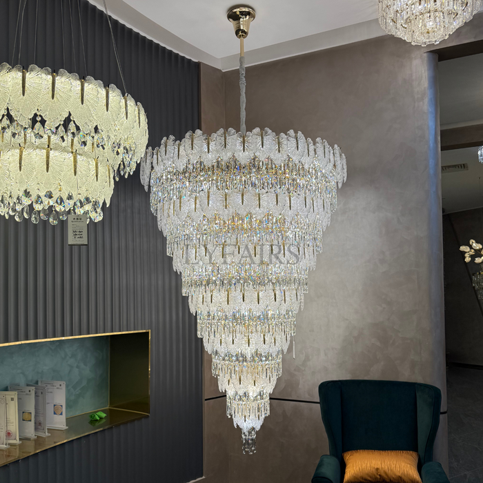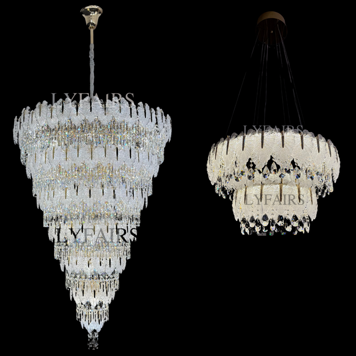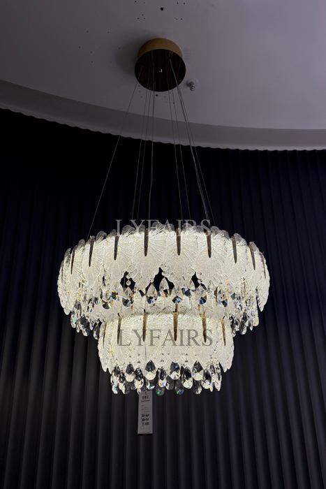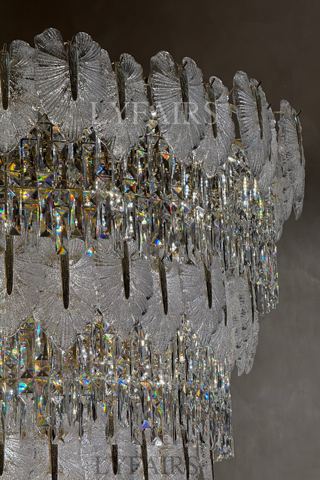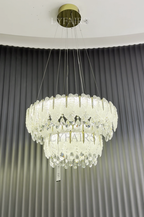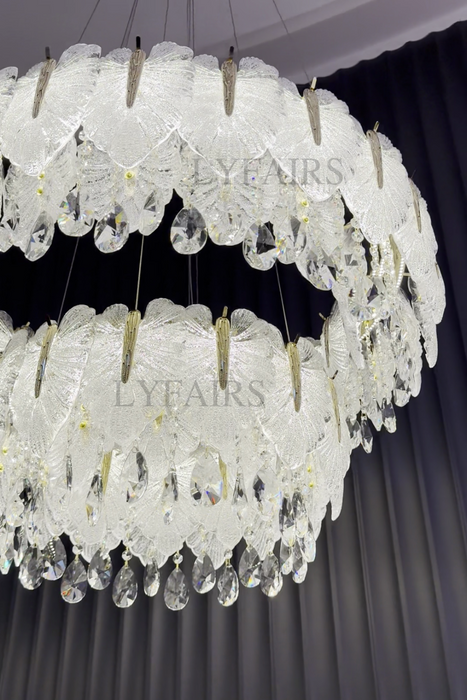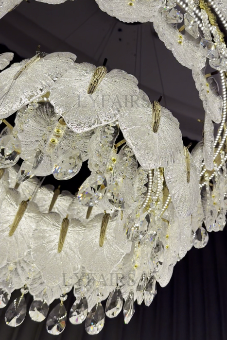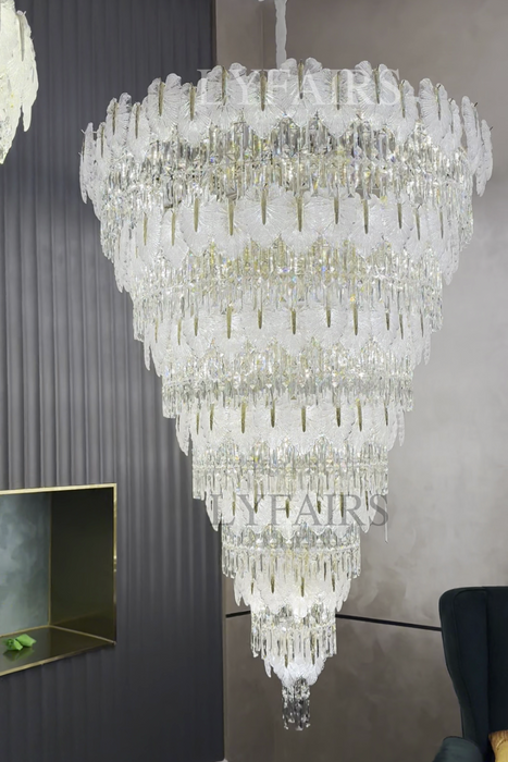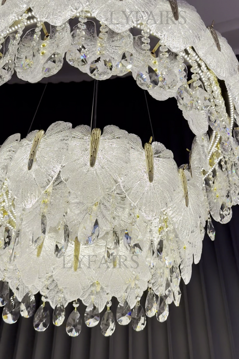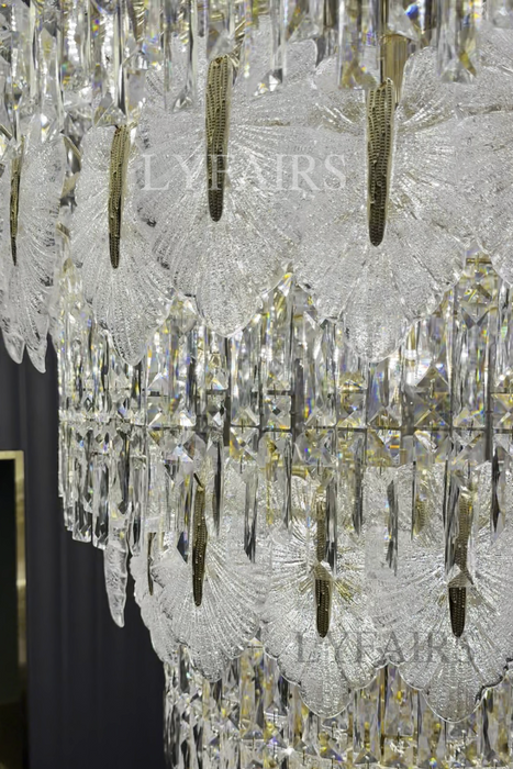 Luxurious Cascading Handcrafted Glass Leaf Multi-Tier Crystal Waterfall Chandelier