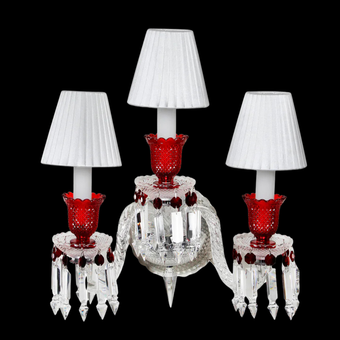 Luxury 3-Arm Candle Light Red Crystal Wall Light