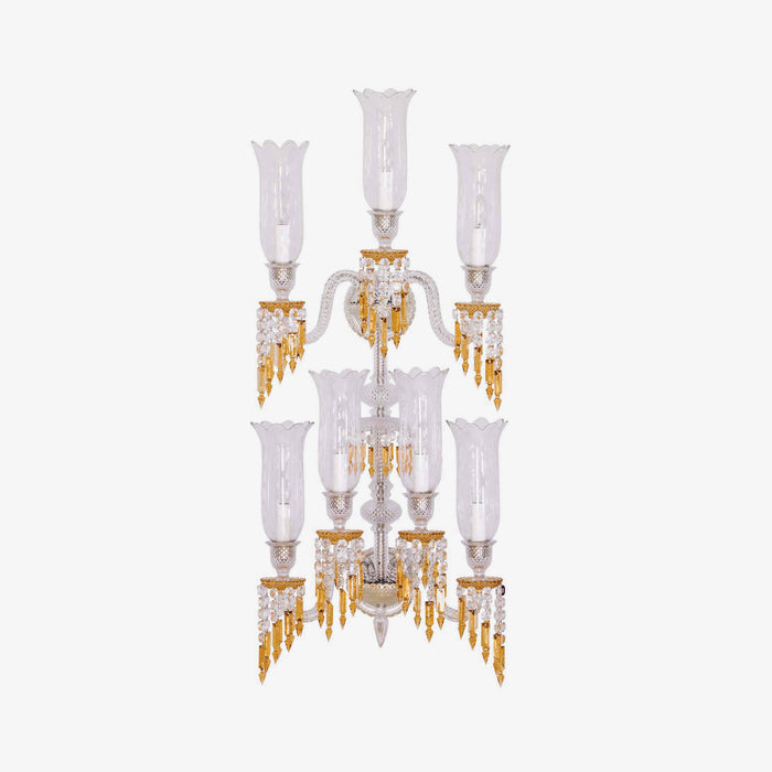 Luxury 7-Candle Yellow&Clear Crystal Wall Lamp