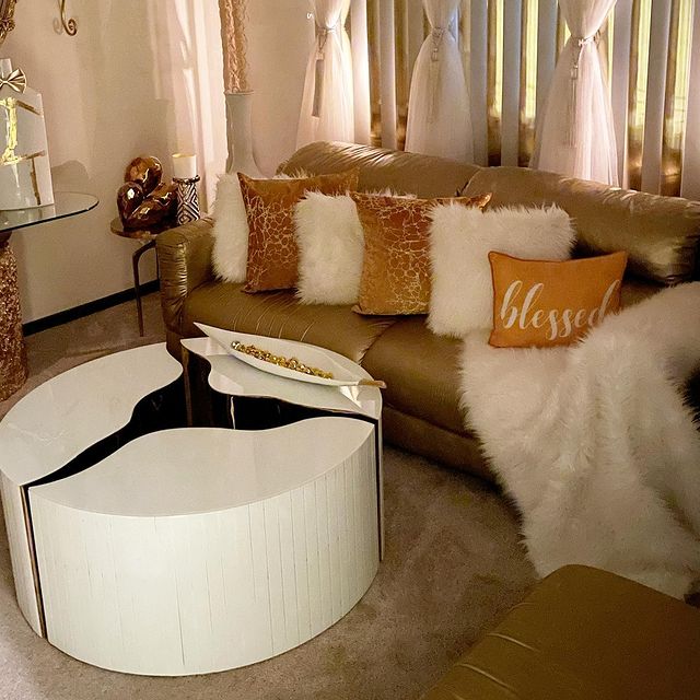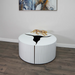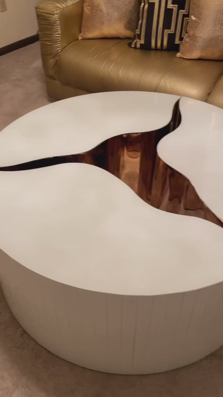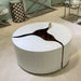 This one-of-a-kind 3-piece coffee table set is a must-have for any modern living room. The unique round design allows for versatility in arranging the tables, while the white exterior and gold colored stainless steel interior add a touch of glamor.