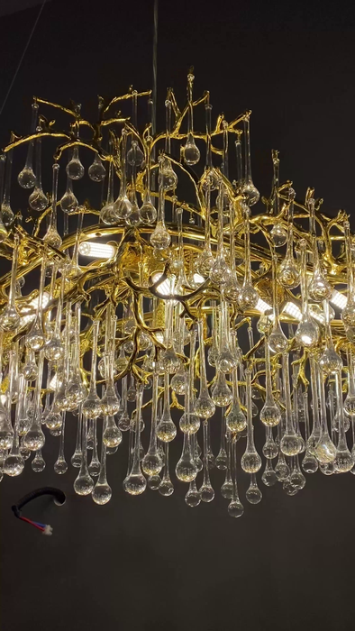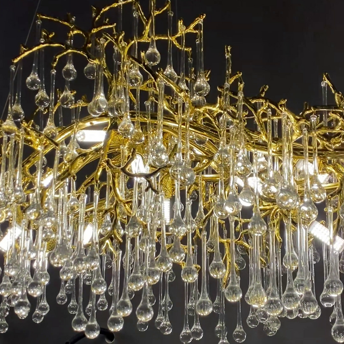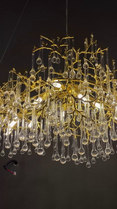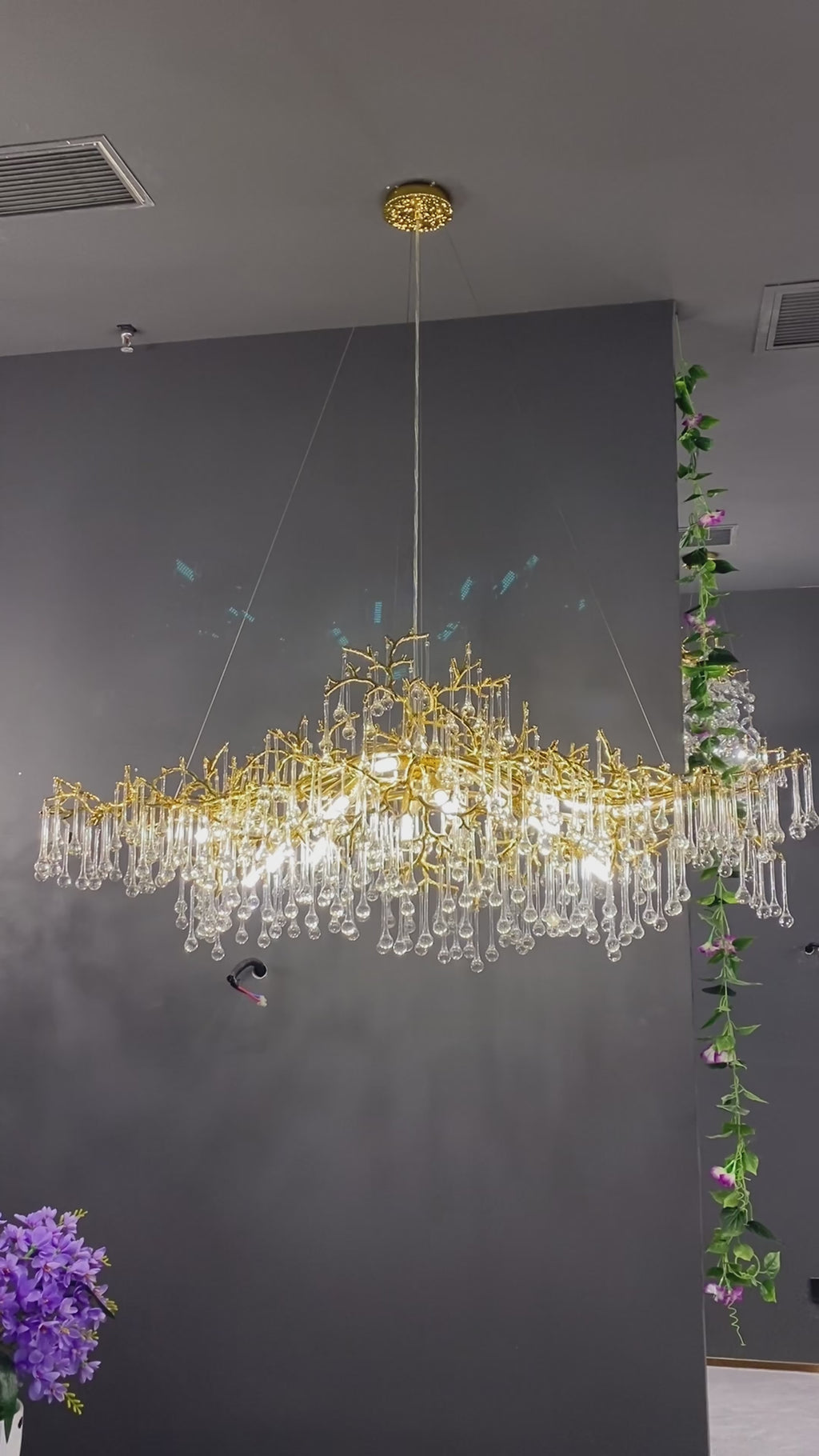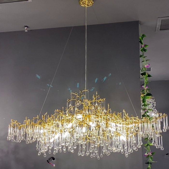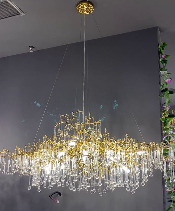 Lámpara de araña de lujo con forma de gota de agua de cristal dorado para comedor/isla de cocina