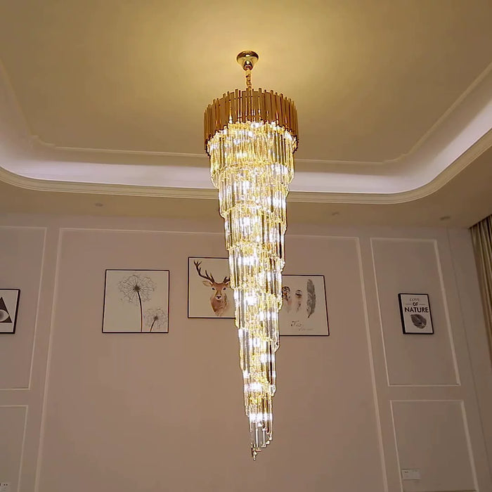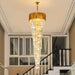 Lámpara de araña de cristal en espiral dorada de lujo para escalera/vestíbulo/entrada