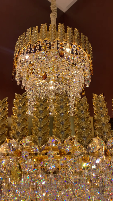 Luxury Golden Wheat Conical Funnel Crystal Chandelier for Living Room/Staircase/Foyer