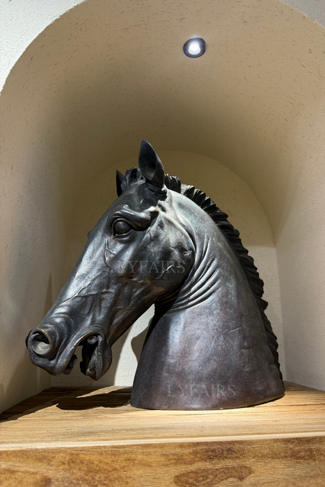 A classical horse head sculpture inspired by ancient equestrian art, this resin bust features refined chiseled details and a majestic stallion profile—perfect for traditional interiors or gallery-style displays.