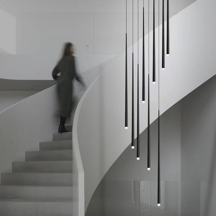 Lámpara de araña larga cónica moderna minimalista para comedor/sala de estar/techo dúplex/escalera de caracol