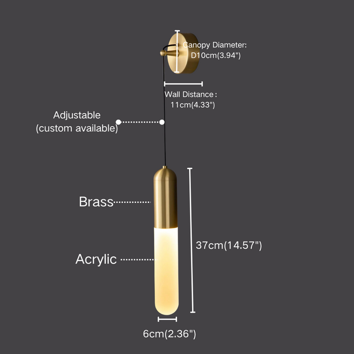 Modern Acrylic Stick Wall Lamp in Black/Brass Finish