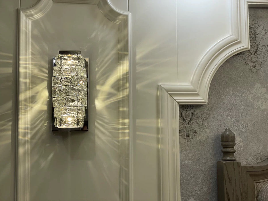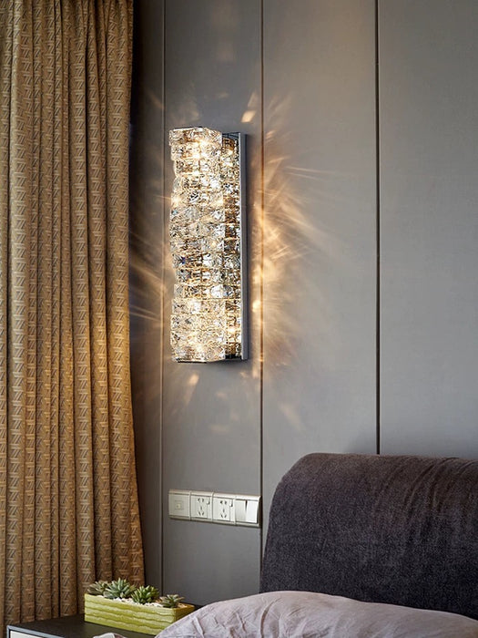 Lámpara de pared de noche colgante de diamante con barra de luz de pared de cristal moderna para decoración de dormitorio