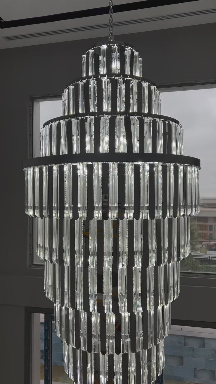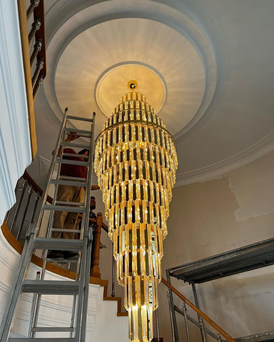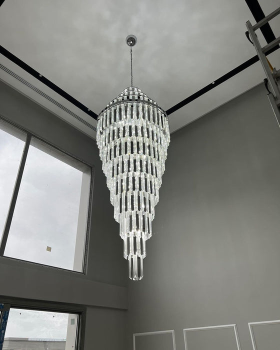 Modern Extra Large Pyramid-shape Crystal Chandelier for High-ceiling