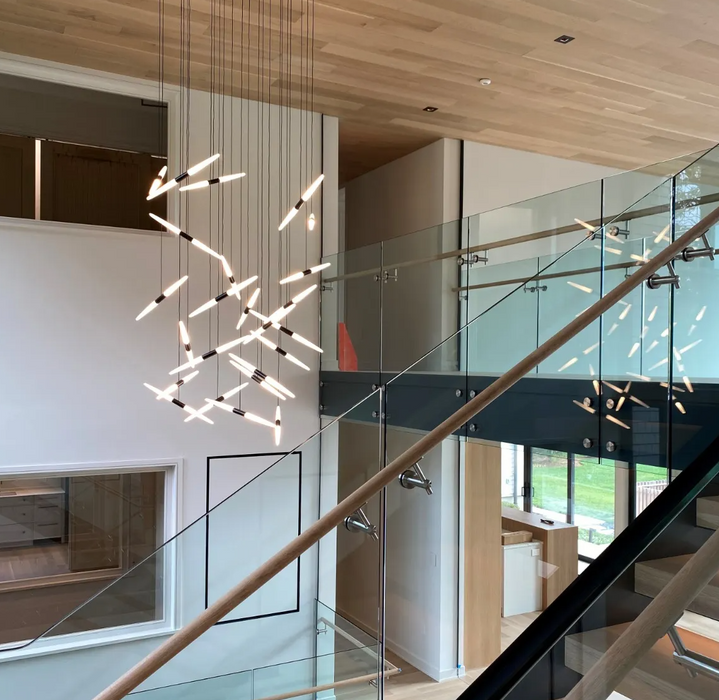 Modern Floating Acrylic Stick Chandelier for High-ceiling