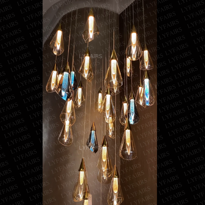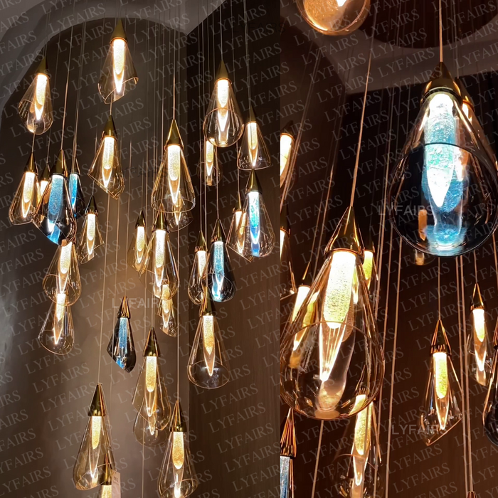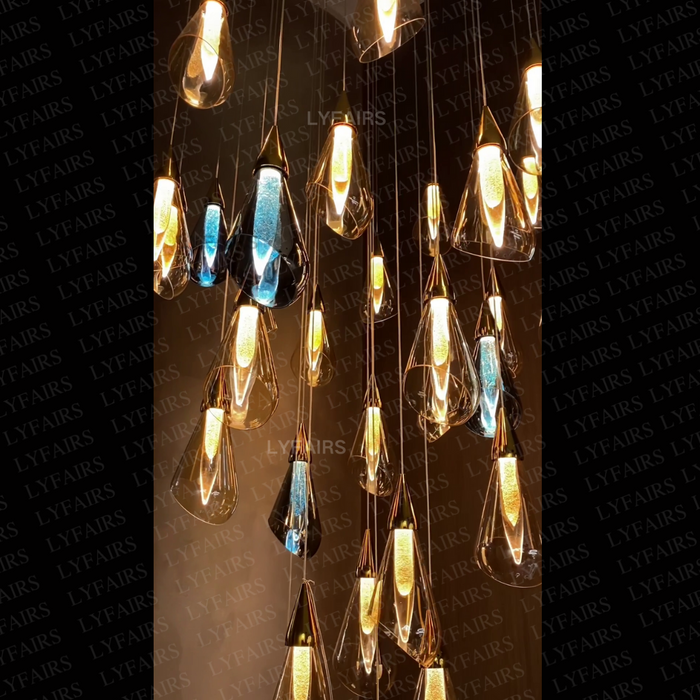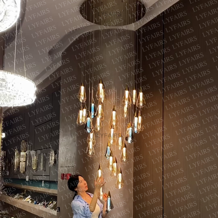 Modern Floating Amber Glass Raindrop Chandelier for High-ceiling